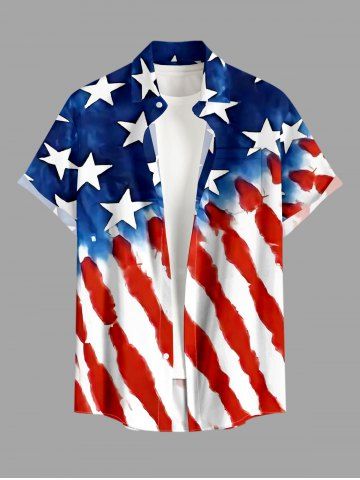 Patriotic Men > Plus Size Patriotic American Flag Print Button Pocket Shirt For Men