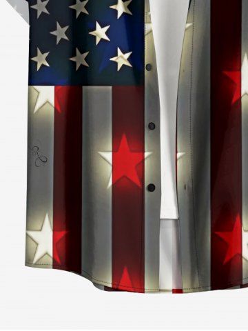 Patriotic Men > Plus Size Patriotic American Flag Print Buttons Pocket Shirt For Men