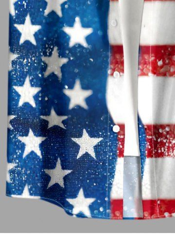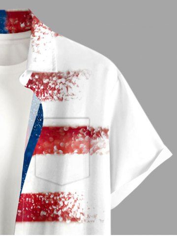 Patriotic Men > Plus Size Patriotic American Flag Print Buttons Pocket Shirt For Men