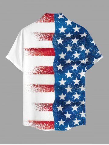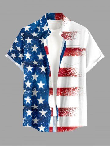 Plus Size Patriotic American Flag Print Buttons Pocket Shirt For Men - Blue - L