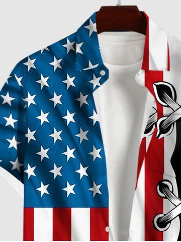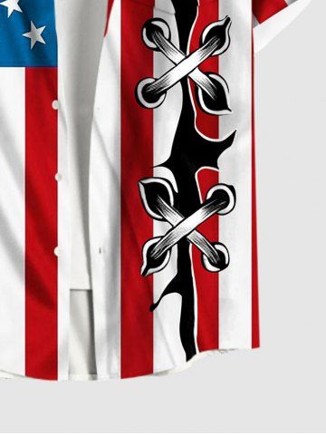 Plus Size Patriotic American Flag Ripped Lace Up 3D Print Buttons Pocket Shirt For Men - Multi-a - 3xl