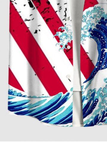Plus Size Patriotic American Flag Sea Waves Print Buttons Pocket Shirt For Men - Multi-a - L