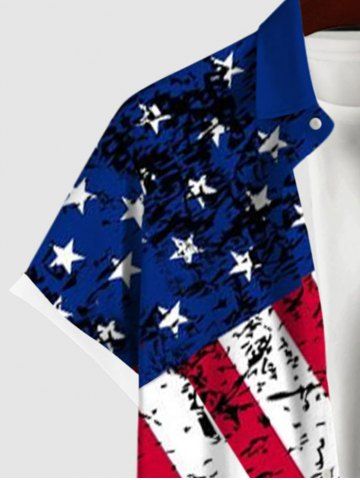 Plus Size Patriotic American Flag Sea Waves Print Buttons Pocket Shirt For Men - Multi-a - Xl