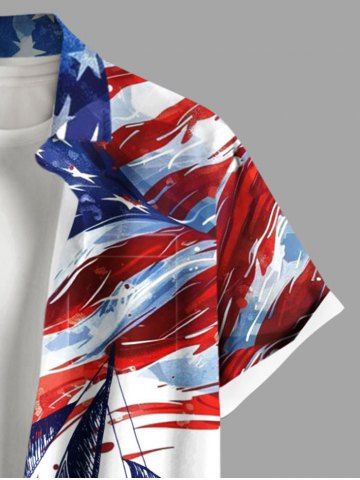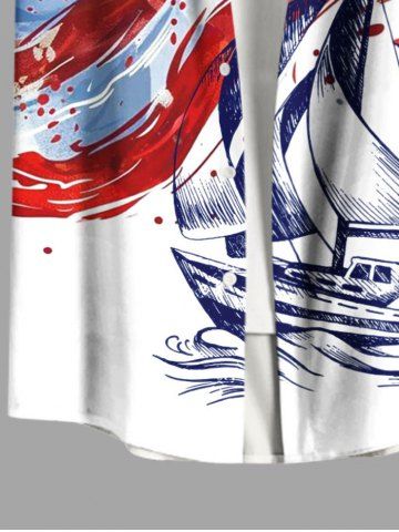 Plus Size Patriotic American Flag Ship Paint Splatter Print Buttons Pocket Hawaii Shirt For Men - White - 3xl