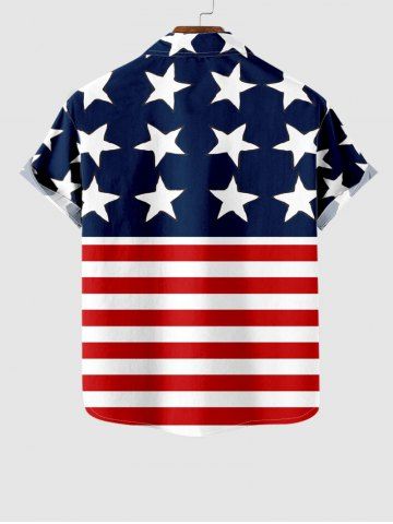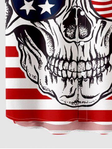 Plus Size Patriotic American Flag Skull Print Buttons Pocket Shirt For Men - Multi-a - Xl