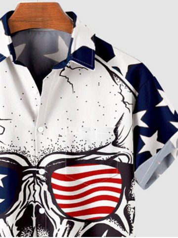 Patriotic Men > Plus Size Patriotic American Flag Skull Print Buttons Pocket Shirt For Men