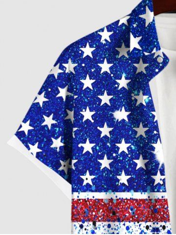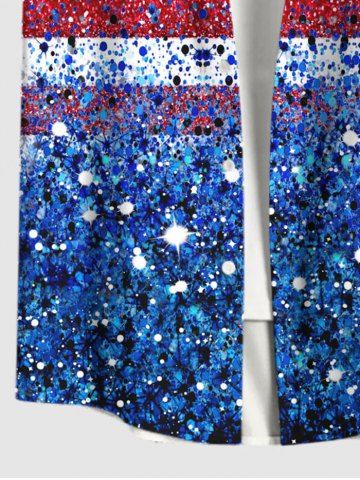 Plus Size Patriotic American Flag Sparkling Sequin 3D Print Buttons Pocket Shirt For Men - Multi-a - S