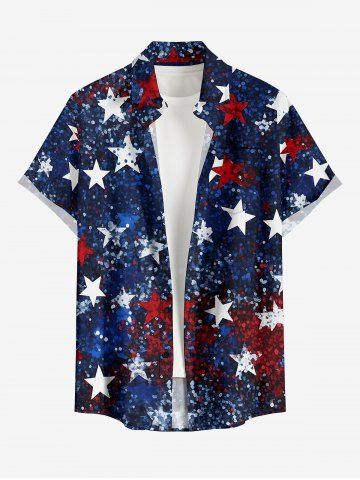 Plus Size Patriotic American Flag Sparkling Sequin 3D Print Buttons Pocket Shirt For Men - Deep Blue - 6xl