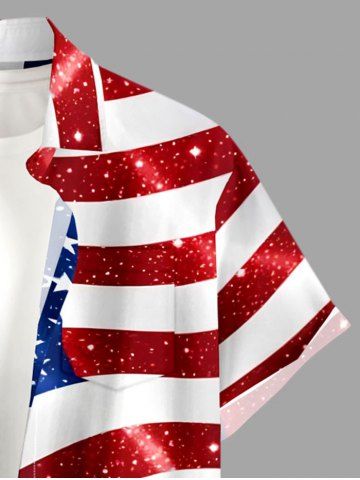 Patriotic Men > Plus Size Patriotic American Flag Sparkling Sequin 3D Print Buttons Pocket Shirt For Men