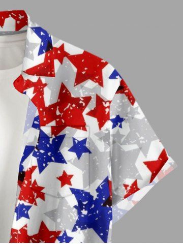 Plus Size Patriotic American Flag Stars Print Buttons Pocket Shirt For Men - White - S