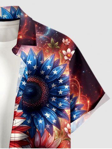 Patriotic Men > Plus Size Patriotic American Flag Sunflowers Galaxy Glitter 3D Print Buttons Pocket Shirt For Men