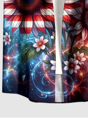 Patriotic Men > Plus Size Patriotic American Flag Sunflowers Galaxy Glitter 3D Print Buttons Pocket Shirt For Men