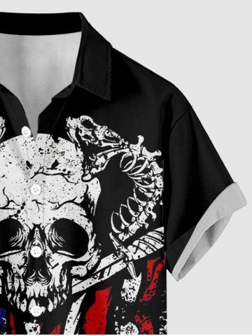 Plus Size Skull Snake Patriotic American Flag Print Button Pocket Shirt For Men - Black - 6xl