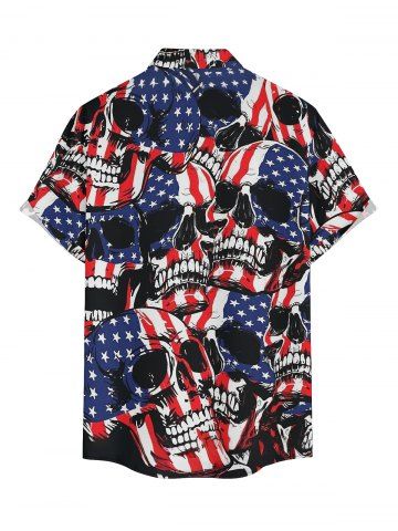 Plus Size Skulls Patriotic American Flag Print Button Pocket Shirt For Men - Deep Blue - Xl