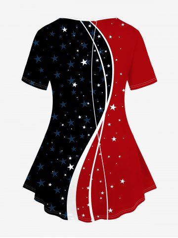Plus Size 3D Flower American Flag Heart Printed Patriotic Tee - Deep Red - 1x | Us 14-16