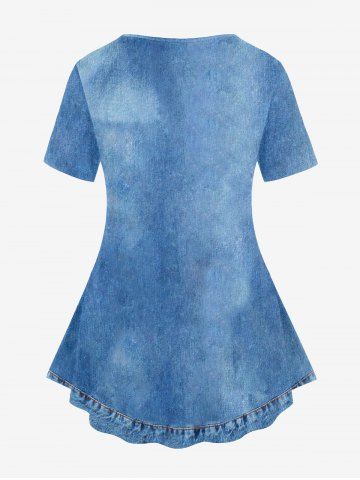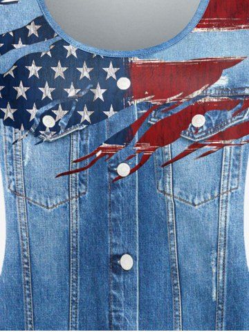 Plus Size 3D Jeans American Flag Printed Short Sleeves Patriotic Tee - Blue - S | Us 8
