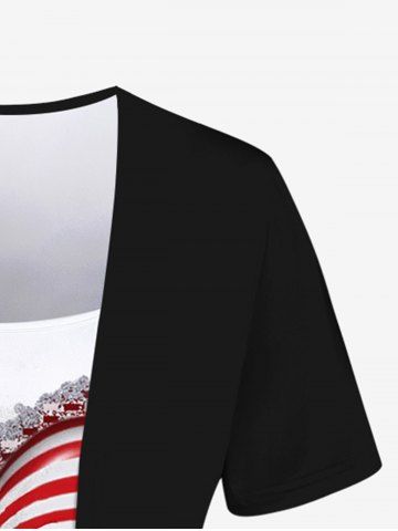 Plus Size 3D Sparkling Sequin American Flag Print Faux Two Piece T-Shirt - Black - L | Us 12