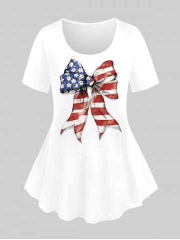 c*****e5American Flag Bowknot Printed Tee and Butterfly American Flag Printed Leggings Plus Size Summer OutfitColor: WHITEfits perfectly