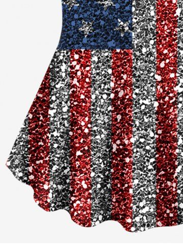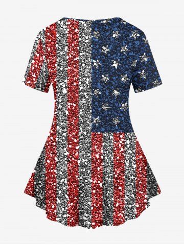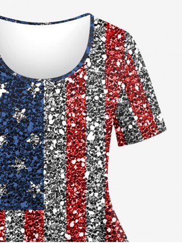 Plus Size American Flag Colorblock Sparkling Sequin 3D Print T-shirt - Multi-a - 1x