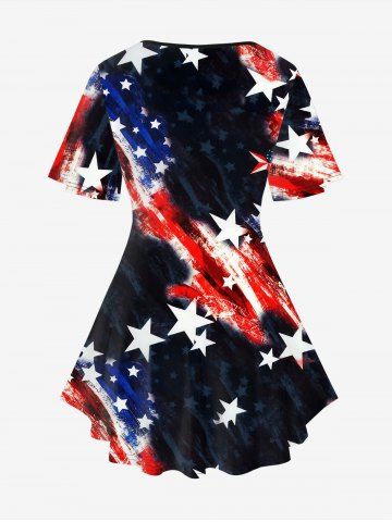Plus Size American Flag Print Crisscross Short Sleeve T-Shirt