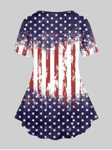 Plus Size American Flag Printed Short Sleeves Patriotic Tee - Deep Blue - L | Us 12