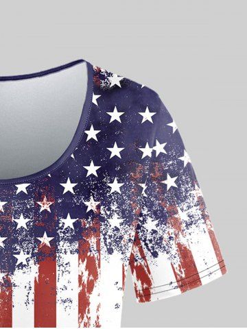 Plus Size American Flag Printed Short Sleeves Patriotic Tee - Deep Blue - 2x | Us 18-20