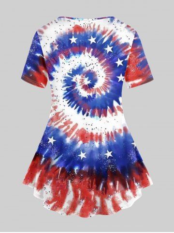 Plus Size American Flag Tie Dye Printed Patriotic Tee