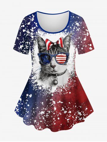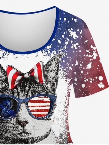 Patriotic T-Shirts > Plus Size Cat Bowknot Glasses Painting Splatter Print Ombre T-shirt