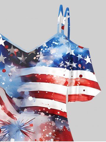 Plus Size Cold Shoulder Watercolor Ombre Patriotic American Flag Fireworks Print Cami T-shirt - Multi-a - L