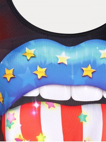 Plus Size & Curve American Flag Lip Print Patriotic Top - Black - 1x | Us 14-16