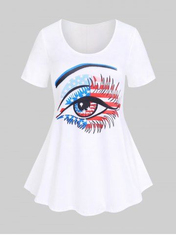 s*****t5Plus Size & Curve Patriotic American Flag Eye Print Graphic TeeColor: WHITE Size: 2X | US 18-20Love it!! the colors are awesome!! the style and fit of the shirt are wonderful. the material is light and cool. thank you.