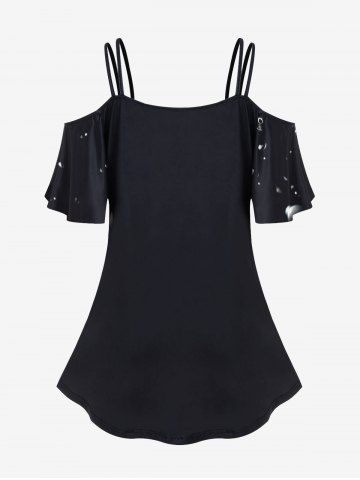 Plus Size Daisy Flower Cross American Flag Bubble Print Cold Shoulder T-shirt - Black - Xs