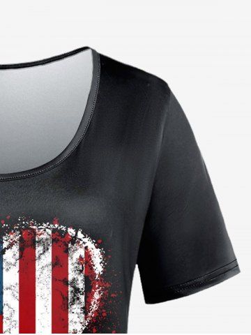 Plus Size Heart American Flag Printed Patriotic Tee - Black - L | Us 12