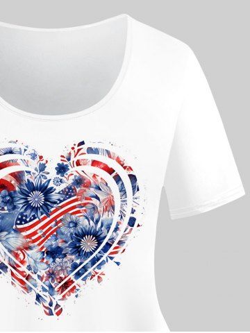 Plus Size Heart Patriotic American Flag Flower Print T-shirt - White - 2x