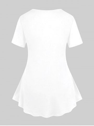 Plus Size Heart Patriotic American Flag Flower Print T-shirt - White - 3x