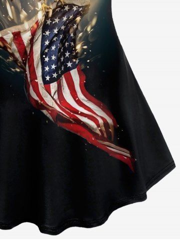 Plus Size Patriotic American Flag Eagle Printed Round Neck T-Shirt - Black - 6x