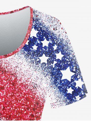 Plus Size Patriotic American Flag Print T-shirt - Blue - L