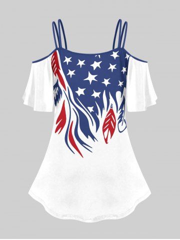 Plus Size Patriotic American Flag Printed Cold Shoulder T-Shirt - White - 2x | Us 18-20