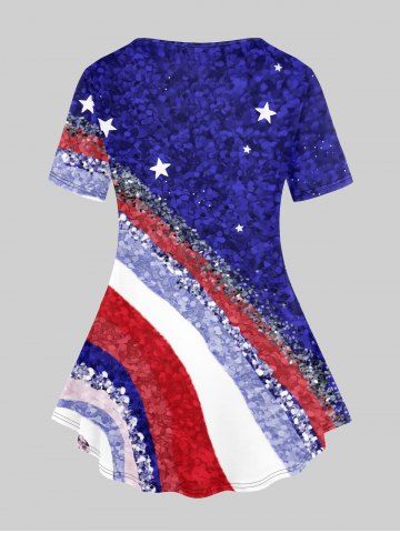 Plus Size Patriotic American Flag Sequins Print Short Sleeves T-shirt - Blue - 3x