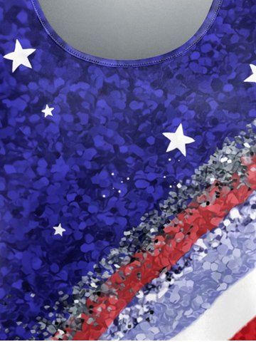 Plus Size Patriotic American Flag Sequins Print Short Sleeves T-shirt - Blue - 4x