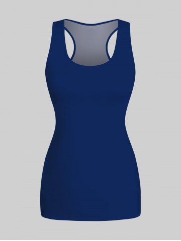 Plus Size Racerback Tank Top and Patriotic American Flag Print Oblique Shoulder T-shirt - Blue - 2x