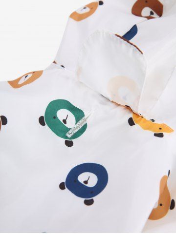 Per's Colorful Bears Print Adjustable Toggle Drawstring Ears Hooded Raincoat - White - L