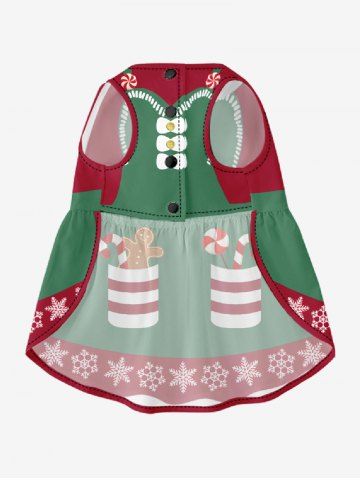 Pet's Christmas Elf Snowflake Candy Print Dress - Green - S