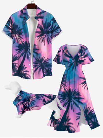 Pet's Coconut Tree Ombre Colorblock Print Hawaii Shirt - Multi-a - 2xl