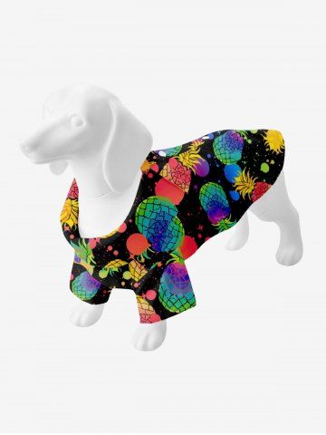 Pet's Colorful Pineapple Paint Splatter Print Hawaii Shirt - Black - S