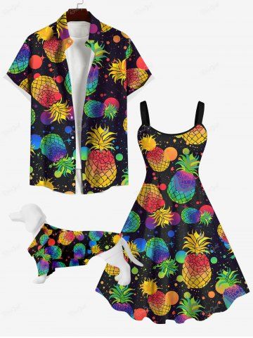 Pet's Colorful Pineapple Paint Splatter Print Hawaii Shirt - Black - Xl