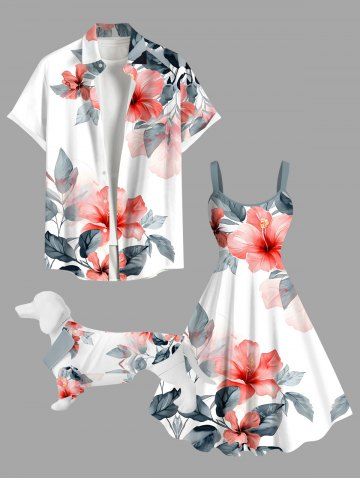 Pet's Flowers Leaf Print Hawaii Shirt - White - 2xl