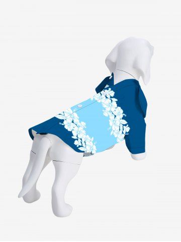Pet's Hibiscus Flower Colorblock Print Hawaii Shirt - Blue - M