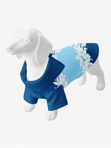 Pet's Hibiscus Flower Colorblock Print Hawaii Shirt - Blue - L