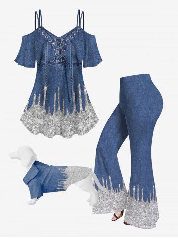 Pet's Paint Drop Blobs Sparkling Sequin Glitter 3D Print Shirt - Deep Blue - L